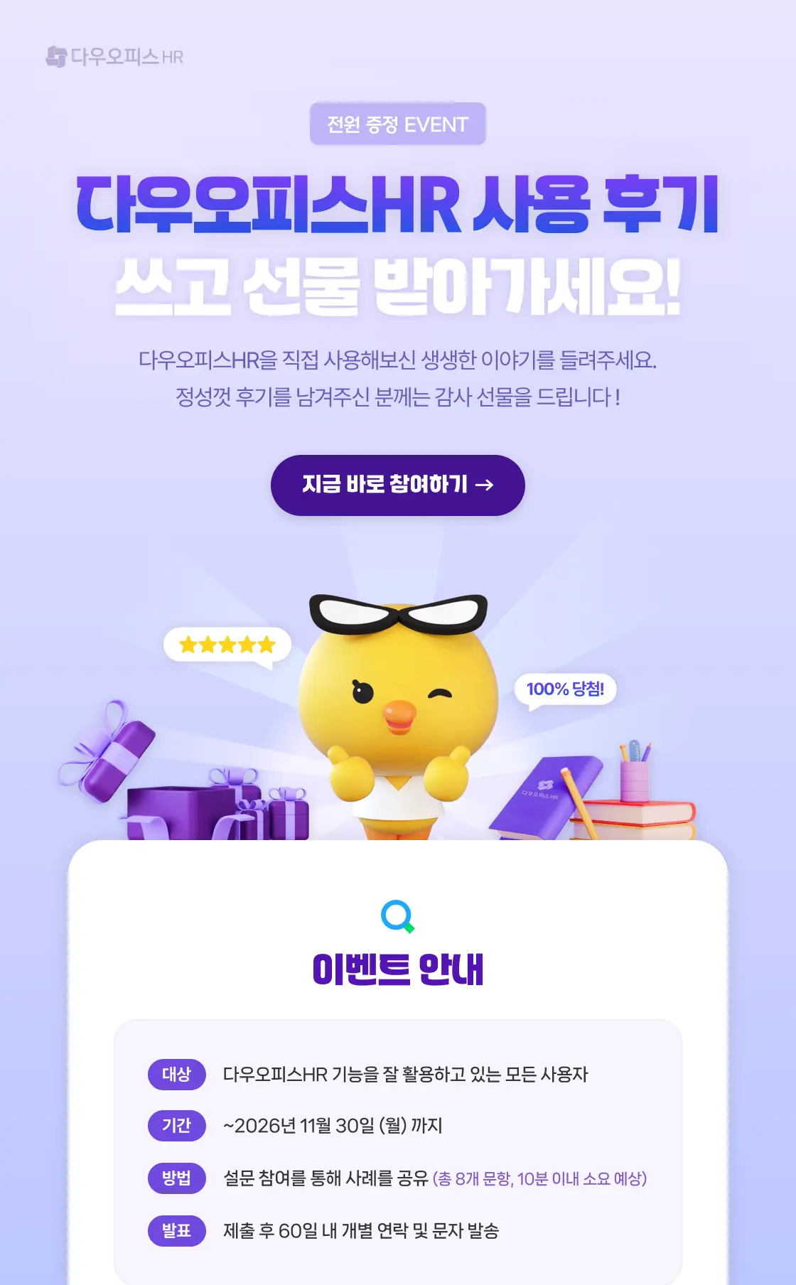 본 이벤트는 기존 다우오피스HR 사용자 대상으로 진행됩니다.